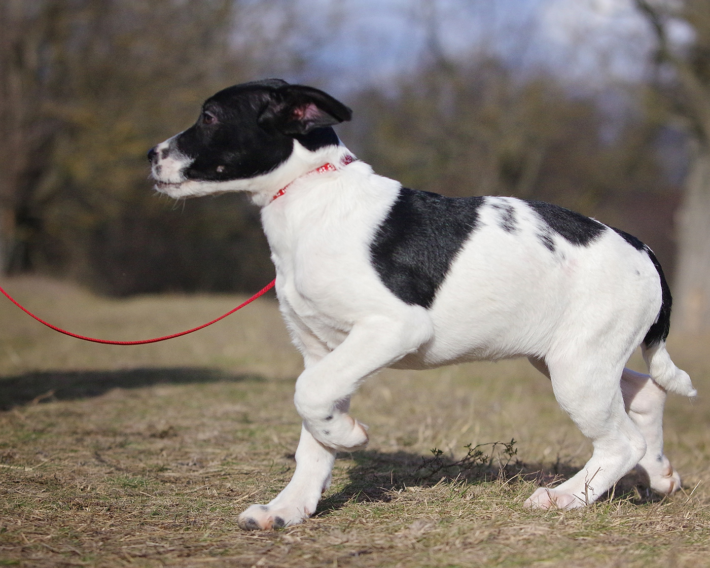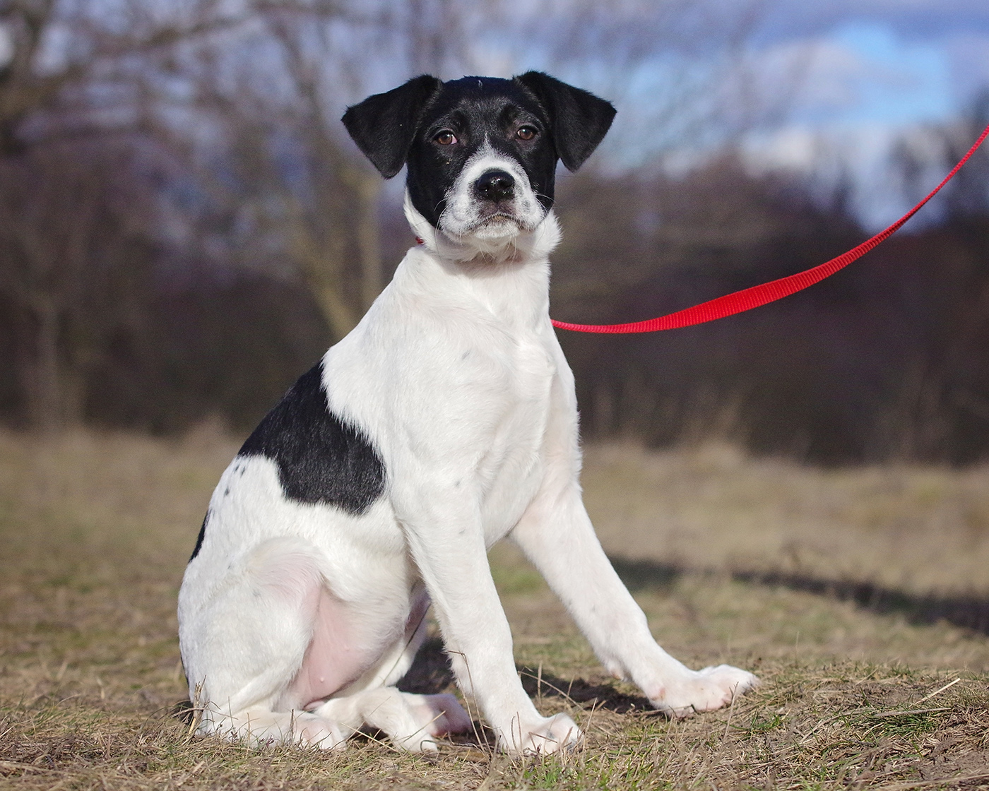 Helia ist die kleinste der drei: aktuell ca. 28 cm Schulterhöhe bei 6 kg, ausgewachsen wird sie voraussichtlich 38–40 cm groß und 15–17 kg schwer.