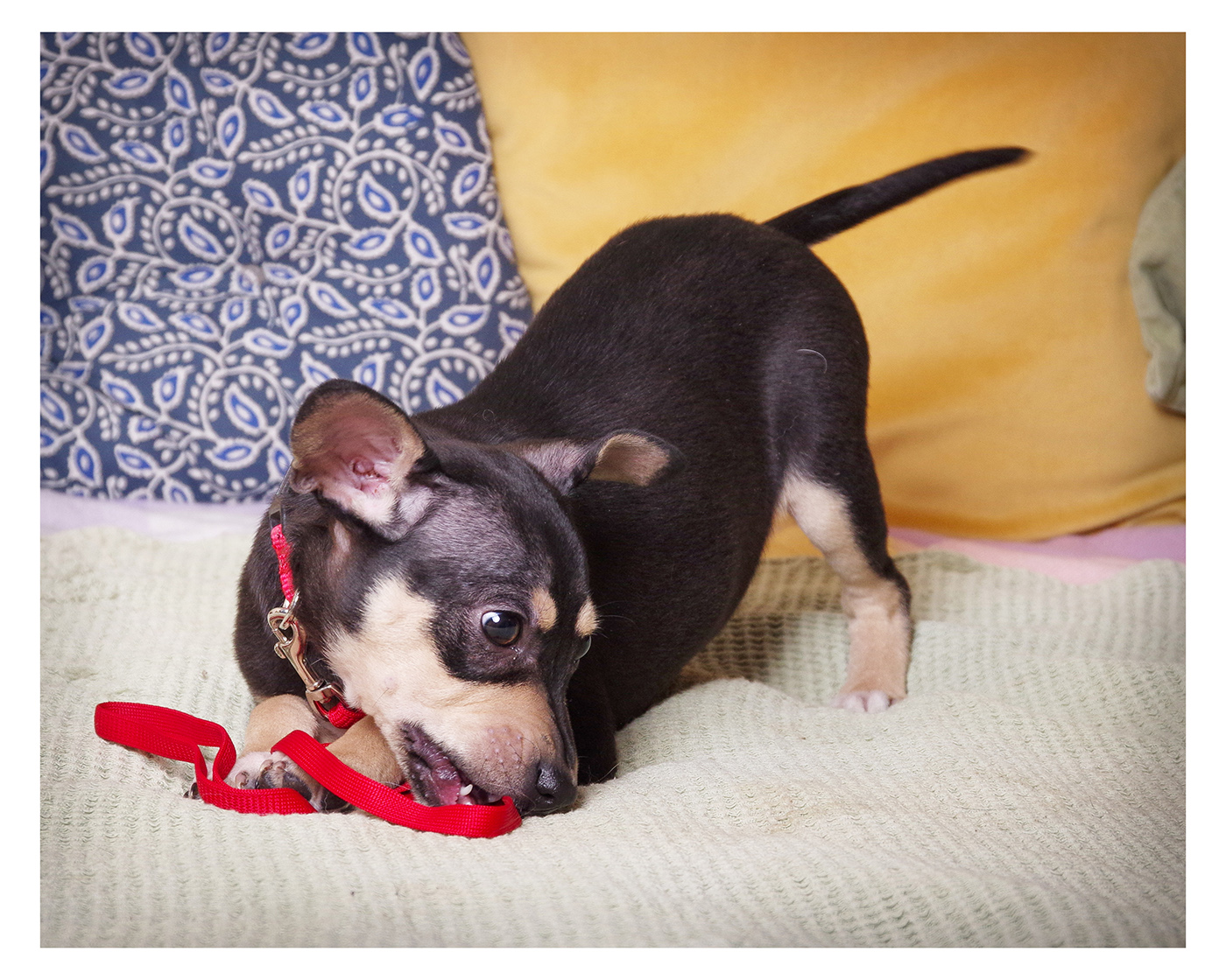 Aktuell ist Josi ca. 23 cm groß und wiegt rund 4 kg. Ausgewachsen wird sie voraussichtlich eine Schulterhöhe von etwa 36–38 cm erreichen und ca. 12–14 kg wiegen (geschätzt).